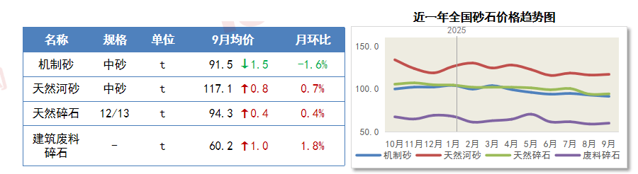 9月15日,次要用料机制中砂价钱环比8月呈现下跌态势。